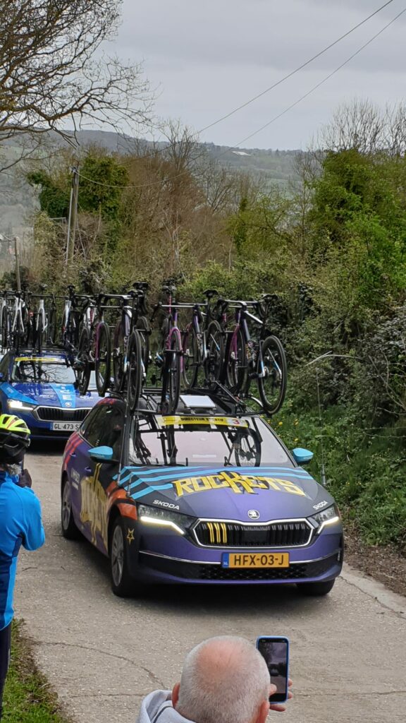 Après un premier arrêt crevaison , 2 ème arrêt au stand 2 kms après, près de St Vaast sur Seulles.